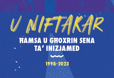 Edited by Keith Borg, the 124-page book in Maltese entitled U Niftakar — Ħamsa u Għoxrin Sena ta Inizjamed, brings together a collection of essays reflecting on Inizjamed’s history, its cultural impact, and the broader literary context in Malta. Essay contributions are by Clare Azzopardi, Kit Azzopardi, Elena Cardona, Claudia Gauci, Adrian Grima, Leanne Ellul, Jean Paul Borg, Nadia Mifsud, Justine Somerville, Karsten Xuereb, and Anna Zammit. The publication also includes short comments by Effie Azzopardi, Alexandra Büchler, Katel Delia, Maria Grech Ganado, Virginia Monteforte, Matthew Schembri, Jake Buttigieg, and Klara Vassallo.